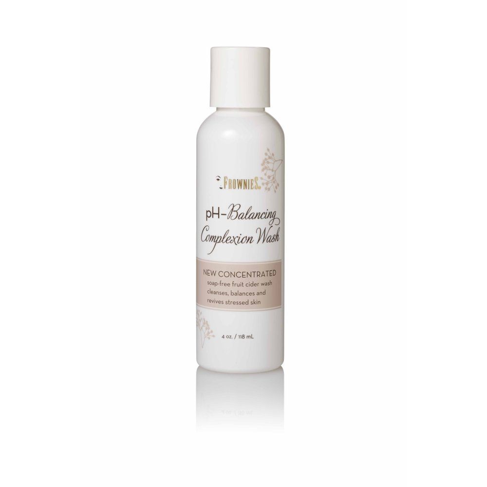 A clear complexion is important to women of all ages The first step in any anti-wrinkle treatment system that will produce or maintain younger looking skin is clean skin. FROWNIES pH Balancing Complexion Wash is a natural skin cleanser that will protect the integrity of the skins natural sun protective layer and help prevent acne break outs.* Exfoliation that is done daily and gently can support wrinkle free skin, gently clearing skin pores of environmental and cosmetic build up without breaking the protective acid mantel of the skin. pH Complexion Wash is gentle and powerful, and can be used on all skin types.